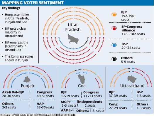 ഉത്തർ പ്രദേശിലും ഗോവയിലും ബിജെപി ഏറ്റവും വലിയ ഒറ്റകക്ഷിയാകും; പഞ്ചാബിൽ മുൻതൂക്കം കോൺഗ്രസിന്; മൂന്നിടങ്ങളിലും സാധ്യത തൂക്ക് മന്ത്രിസഭയ്ക്ക്; ദ വീക്ക് ഹസ്ന റിസർച്ച് നടത്തിയ അഭിപ്രായ സർവേഫലം വ്യക്തമാക്കുന്നത് ഇങ്ങനെ