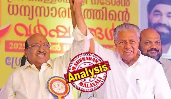 ഇവിടെയാണ് പിണറായിയുടെ തന്ത്രം. വെള്ളാപ്പള്ളിയെ തള്ളിപ്പറയാന് സിപിഎം തയ്യാറല്ല. വെള്ളാപ്പള്ളി മതേതരത്വത്തിന്റെ വക്താവാണെന്നാണ് പാര്ട്ടി സെക്രട്ടറി എം.വി. ഗോവിന്ദന് വിശേഷിപ്പിക്കുന്നത്. ഹിന്ദു വോട്ടുകള് ധ്രുവീകരിച്ച് യുഡിഎഫില് നിന്ന് അകറ്റുക എന്ന അജണ്ട വെള്ളാപ്പള്ളിയെക്കൊണ്ട് പിണറായി ഭംഗിയായി നടപ്പിലാക്കുന്നു.