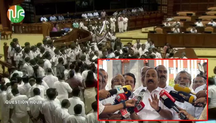 അതേസമയം, ഭരണപക്ഷം ഒളിച്ചോടിയെന്ന് പ്രതിപക്ഷം വിമര്ശിച്ചു. മൂന്നുഎംഎല്എമാരുടടെ സസ്പെന്ഷന് അംഗീകാരമായി കാണുന്നുവെന്ന് പ്രതിപക്ഷ നേതാവ് വി ഡി സതീശന് പറഞ്ഞു. നടപടി ഒരു തെറ്റും ചെയ്യാതെയാണ്. ഒരു ആക്രമണവും നടന്നിട്ടില്ല. സ്പീക്കറും സര്ക്കാരും ഗൂഢാലോചന നടത്തിയെന്നും വി ഡി സതീശന് ആരോപിച്ചു. പേടിപ്പിക്കാന് നോക്കേണ്ടെന്നും അദ്ദേഹം പറഞ്ഞു.