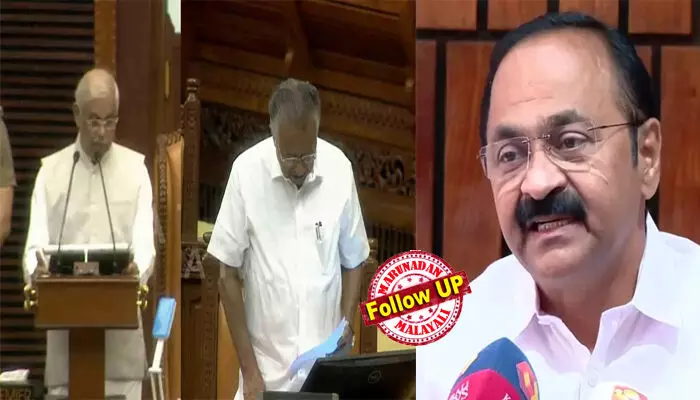 നയപ്രഖ്യാപന പ്രസംഗത്തിന് പിന്നാലെ നിയമസഭയില് നാടകീയ രംഗങ്ങളാണ് അരങ്ങേറിയിരുന്നത്. കേന്ദ്ര സര്ക്കാറിനെതിരായ വിമര്ശനങ്ങളില് ഗവര്ണര് കൂട്ടിച്ചേര്ക്കലുകളും ഒഴിവാക്കലുകളും നടത്തിയെന്ന് മുഖ്യമന്ത്രി പിണറായി വിജയന് പറഞ്ഞു. 12, 15 ഖണ്ഡികകളിലെ ഓരോ വാചകങ്ങളാണ് ഒഴിവാക്കിയത്.ഖണ്ഡിക 16 ലെ വാചകത്തില് 'എന്റെ സര്ക്കാര് കരുതുന്നു' എന്നും ഗവര്ണര് കൂട്ടിച്ചേര്ത്തിരുന്നു.