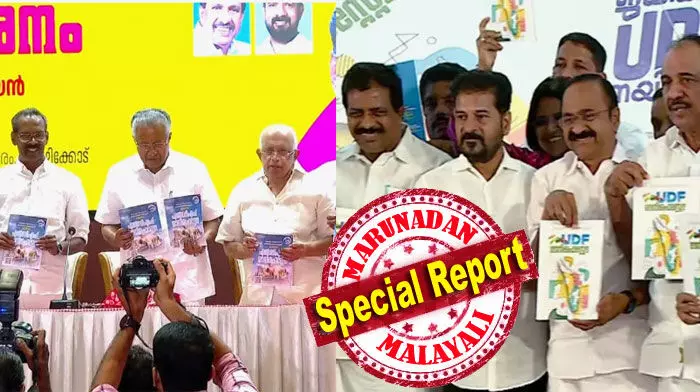 കൊച്ചി/കോഴിക്കോട്: കേരള നിയമസഭാ തിരഞ്ഞെടുപ്പിന് ദിവസങ്ങള് മാത്രം ബാക്കിനില്ക്കെ, വോട്ടര്മാരെ ആകര്ഷിക്കാന് വമ്പന് വാഗ്ദാനങ്ങളുമായി യുഡിഎഫും എല്ഡിഎഫും പ്രകടനപത്രിക പുറത്തിറക്കി. പറയുന്ന കാര്യങ്ങളെല്ലാം ഇരുമുന്നണികളും നടപ്പിലാക്കിയാല് വരും വര്ഷങ്ങള് മലയാളിക്ക് വസന്തകാലമാകുമെന്ന് ഉറപ്പാണ്. കൊച്ചിയില് നടന്ന ചടങ്ങില് തെലങ്കാന മുഖ്യമന്ത്രി രേവന്ത് റെഡ്ഡി യുഡിഎഫ് പത്രിക പുറത്തിറക്കിയപ്പോള്, കോഴിക്കോട് വെച്ച് മുഖ്യമന്ത്രി പിണറായി വിജയനാണ് എല്ഡിഎഫിന്റെ വികസനരേഖ പ്രകാശനം ചെയ്തത്.