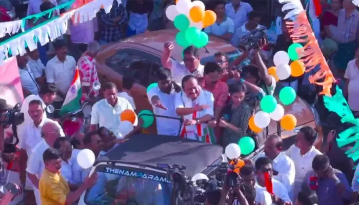 പറവൂരിലെ റോഡ്ഷോയ്ക്കിടെ സംസാരിക്കുകയായിരുന്നു വിഡി സതീശന്. ഇന്ന് ഡല്ഹിയില് നിന്ന് എത്തിയശേഷം വിഡി സതീശന് സ്വന്തം മണ്ഡലമായ പറവൂരിലേക്കാണ് ആദ്യം പോയത്. തുടര്ന്ന് വൈകിട്ട് നടന്ന റോഡ് ഷോയോട് കൂടി മണ്ഡലത്തിലെ പ്രചാരണ പരിപാടികള്ക്ക് തുടക്കമിടുകയായിരുന്നു. നൂറുകണക്കിന് പ്രവര്ത്തകരാണ് റോഡ് ഷോയില് പങ്കെടുത്തത്.