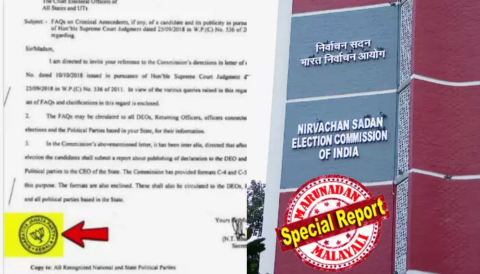 മുഖ്യ തിരഞ്ഞെടുപ്പ് ഓഫീസറുടെ ഔദ്യോഗിക സര്ക്കുലറില് രാഷ്ട്രീയ പാര്ട്ടിയായ ബിജെപിയുടെ സീല് പതിഞ്ഞ സംഭവം കേവലമൊരു വീഴ്ച എന്നതിലുപരി വലിയൊരു രാഷ്ട്രീയ ഗൂഢാലോചനയാണെന്ന ആരോപണമാണ് ഇപ്പോള് ഉയരുന്നത്. സംസ്ഥാന ഭരണകൂടവും തിരഞ്ഞെടുപ്പ് കമ്മീഷനിലെ ഒരു വിഭാഗം ഉദ്യോഗസ്ഥരും ചേര്ന്ന് ബിജെപിയെ മനഃപൂര്വ്വം പ്രതിക്കൂട്ടിലാക്കാന് ശ്രമിക്കുന്നുവെന്ന പരാതിയുമായി പാര്ട്ടി നേതൃത്വം രംഗത്തെത്തിയതോടെ വിഷയം കേന്ദ്ര തിരഞ്ഞെടുപ്പ് കമ്മീഷന്റെ മുന്നിലെത്തിയിരിക്കുകയാണ്.