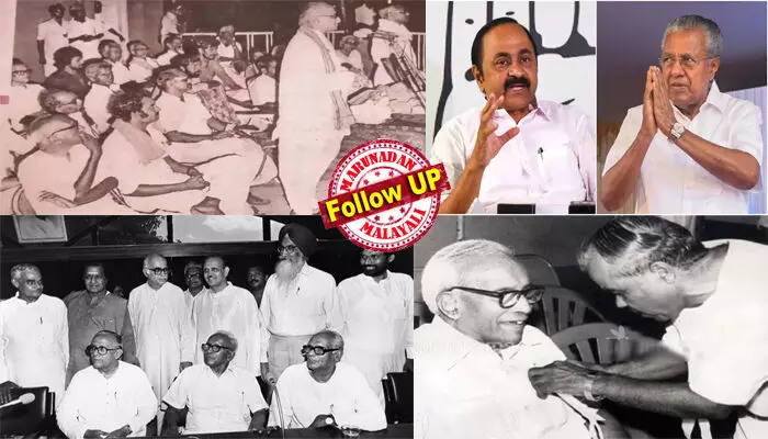 1977 ല് ആര്.എസ്.എസിന്റെ പിന്തുണയില് മത്സരിച്ച് നിയമസഭയില് എത്തിയ എം.എല്.എ പിണറായി വിജയനാണ്, അല്ലാതെ വി.ഡി സതീശനല്ല. അന്ന് ഉദുമയിലെ സി.പി.എം- ആര്.എസ്.എസ് സംയുക്ത സ്ഥാനാര്ത്ഥിയായിരുന്നില്ലേ ആര്.എസ്.എസ് നേതാവ് കെ.ജി മാരാര്? അതേ കെ.ജി മാരാര് ഇ.എം.എസിന് ബാഡ്ജ് കുത്തിക്കൊടുക്കുന്ന ചിത്രം ഇപ്പോഴും ലഭ്യമാണെന്നതും മറക്കരുത്. പാലക്കാട് മത്സരിച്ച സി.പി.എം സ്ഥാനാര്ത്ഥി ശിവദാസ മേനോന്റെ പ്രചരണ പരിപാടിയില് മുതിര്ന്ന ബി.ജെ.പി നേതാവ് എല്.കെ അദ്വാനി പങ്കെടുത്തതും പിണറായി വിജയന് നിഷേധിക്കുമോ? 1989 ല് കോണ്ഗ്രസിനെ അട്ടിമറിക്കാന് വി.പി സിംഗിന് പിന്തുണ നല്കിക്കൊണ്ട് സി.പി.എം നേതാക്കളായ ഇ.എം.എസും ജോതിബസുവും അദ്വാനിക്കും വാജ്പേയ്ക്കും ഒപ്പം നില്ക്കുന്ന ചിത്രങ്ങളും ഗൂഗിളില് പരതിയാല് കിട്ടും. ഈ വിപ്ലവ പാരമ്പര്യങ്ങളൊക്കെ മറച്ചുവച്ചു കൊണ്ടാണ് ആര്.എസ്.എസിനോട് ഒരു ഘട്ടത്തിലും സന്ധി ചെയ്തിട്ടില്ലെന്നും വര്ഗീയതയെ ഒറ്റപ്പെടുത്താന് ശ്രമിച്ചെന്നും പിണറായി വിജയന് പറയുന്നത്.