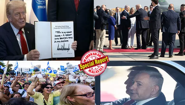 'ഇത് എനിക്ക് വലിയ ബഹുമതിയാണ്. ഒരു മഹത്തായതും മനോഹരവുമായ ദിവസം, ഒരു പുതിയ തുടക്കം,' ട്രംപ് നെസെറ്റില് അതിഥി പുസ്തകത്തില് കുറിച്ചു. നെതന്യാഹു അദ്ദേഹത്തോടൊപ്പം വേദി പങ്കിട്ടു. ഗസ്സ സമാധാന ചര്ച്ചകള്ക്കായി ട്രംപ് പിന്നീട് ഈജിപ്തിലേക്ക് തിരിക്കും.