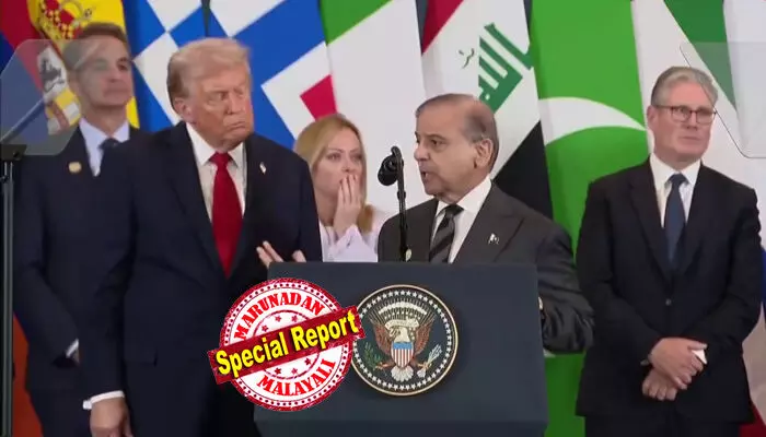 'പ്രസിഡന്റ് ട്രംപിന്റെ അക്ഷീണമായ ശ്രമങ്ങളിലൂടെ സമാധാനം കൈവരിച്ചതിനാല്, ഇന്ന് സമകാലിക ചരിത്രത്തിലെ ഏറ്റവും മഹത്തായ ദിവസങ്ങളില് ഒന്നാണ്' ഷെരീഫ് തന്റെ പ്രസംഗത്തില് പറഞ്ഞു. ട്രംപിനെ സമാധാനത്തിന്റെ മനുഷ്യന് എന്ന് വിശേഷിപ്പിച്ച ഷെരീഫ്, ലോകത്തെ സമാധാനത്തോടെയും സമൃദ്ധിയോടെയും ജീവിക്കാന് കഴിയുന്ന ഒരിടമാക്കി മാറ്റിയത് ട്രംപാണ് എന്നും വികാരനിര്ഭരമായ അഞ്ച് മിനിറ്റ് പ്രസംഗത്തിലൂടെ പറഞ്ഞു.