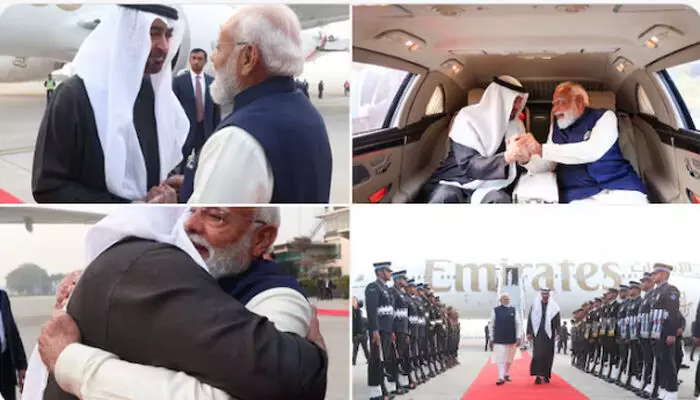 പ്രധാനമന്ത്രി മോദിയുടെ ക്ഷണം സ്വീകരിച്ചാണ് ഷെയ്ഖ് മുഹമ്മദ് ബിന് സായിദ് അല് നഹ്യാന് ഇന്ത്യയിലെത്തിയത്. യുഎഇ പ്രസിഡന്റായി സ്ഥാനമേറ്റ ശേഷം ഇത് അദ്ദേഹത്തിന്റെ മൂന്നാമത്തെ ഔദ്യോഗിക ഇന്ത്യാ സന്ദര്ശനമാണ്. കഴിഞ്ഞ ഒരു ദശാബ്ദത്തിനിടെ അഞ്ചാം തവണയാണ് അദ്ദേഹം ഇന്ത്യയിലെത്തുന്നത്. യുഎഇ പ്രസിഡന്റിനെ 'എന്റെ സഹോദരന്' എന്ന് വിശേഷിപ്പിച്ചുകൊണ്ട് പ്രധാനമന്ത്രി മോദി എക്സില് (നേരത്തെ ട്വിറ്റര്) ഒരു സന്ദേശം പങ്കുവെച്ചിരുന്നു. 'യുഎഇ പ്രസിഡന്റ് ഷെയ്ഖ് മുഹമ്മദ് ബിന് സായിദ് അല് നഹ്യാനെ സ്വാഗതം ചെയ്യാന് വിമാനത്താവളത്തില് പോയി. ഇന്ത്യ-യുഎഇ സൗഹൃദത്തിന് അദ്ദേഹം നല്കുന്ന പ്രാധാന്യം ഈ സന്ദര്ശനം വ്യക്തമാക്കുന്നു. ഞങ്ങളുടെ ചര്ച്ചകള്ക്കായി കാത്തിരിക്കുന്നു,' മോദി കുറിച്ചു.
