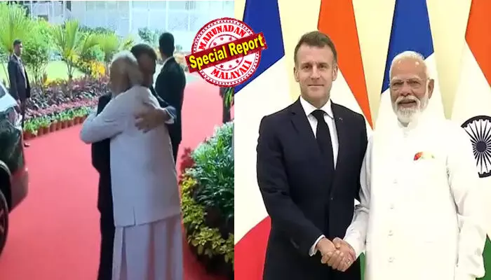 മുംബൈയിലെത്തിയ മാക്രോണിനെ കെട്ടിപ്പിടിച്ച് സ്വീകരിച്ച പ്രധാനമന്ത്രി മോദിയുടെ ചിത്രം ഇതിനോടകം തന്നെ സോഷ്യല് മീഡിയയില് തരംഗമായിക്കഴിഞ്ഞു. 'എന്റെ പ്രിയ സുഹൃത്തിനെ ഇന്ത്യയിലേക്ക് സ്വാഗതം ചെയ്യുന്നു' എന്ന് പറഞ്ഞ മോദി, ഈ സന്ദര്ശനം ഇരുരാജ്യങ്ങളും തമ്മിലുള്ള ബന്ധത്തെ പുതിയ ഉയരങ്ങളിലേക്ക് എത്തിക്കുമെന്നും ആത്മവിശ്വാസം പ്രകടിപ്പിച്ചു.