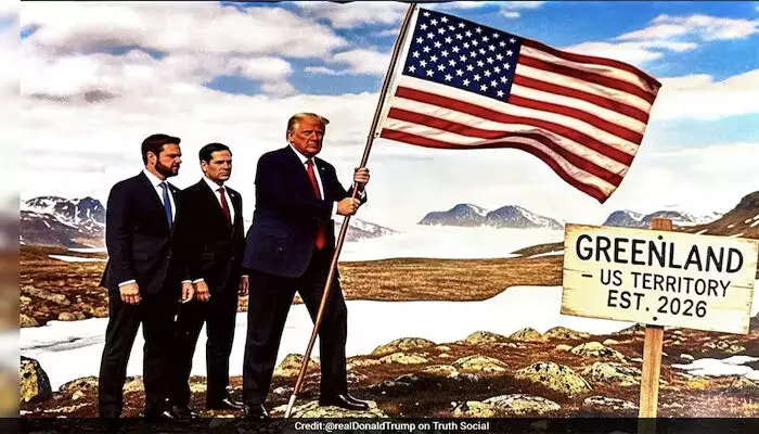 ഗ്രീന്ലാന്ഡിനെ യുഎസ് പ്രദേശമായി ചിത്രീകരിച്ച ഭൂപടം പങ്കുവച്ച് ട്രംപ്