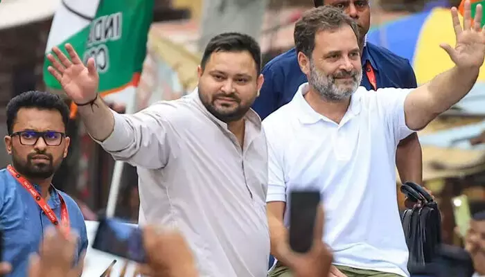 അതേസമയം, ഇന്ത്യ സംഖ്യത്തില് സംസ്ഥാനത്ത് ഏറ്റവും കൂടുതല് ജനപിന്തുണയുള്ള നേതാവായി തേജസ്വി യാദവിനെയാണ് ഇന്ത്യ സഖ്യത്തിലെ മറ്റു പാര്ട്ടികള് കാണുന്നത്. നിലവില് സംസ്ഥാനം ഭരിക്കുന്ന ജെ.ഡി.യു നേതാവ് നിതീഷ് കുമാറിന് ശക്തമായ വെല്ലുവിളി ഉയര്ത്താന് തേജസ്വിക്കെ കഴിയൂവെന്നാണ് ഭൂരിഭാഗത്തിന്റെയും വിലയിരുത്തല്. ആര്.ജെ.ഡിയും കോണ്ഗ്രസുമാണ് ഇന്ത്യസഖ്യത്തിലെ പ്രധാന പാര്ട്ടികള്. എന്നാല്, തേജസ്വിയെ മുഖ്യമന്ത്രി സ്ഥാനത്തേക്ക് ഉയര്ത്തിക്കാട്ടാന് കോണ്ഗ്രസ് ഇതുവരെ തയാറായിട്ടില്ല. ഇതുമായി ബന്ധപ്പെട്ട മാധ്യമപ്രവര്ത്തകരുടെ ചോദ്യത്തില്നിന്ന് രാഹുല് ഗാന്ധിയും ഒഴിഞ്ഞുമാറുകയാണ് ചെയ്തത്. അതേസമയം, മഹാസഖ്യത്തില് കൂടുതല് സീറ്റുകളില് മത്സരിക്കാനുള്ള ആര്.ജെ.ഡി നീക്കമാണ് കോണ്ഗ്രസിനെയും മറ്റു ഇടതുപാര്ട്ടികളെയും ചൊടിപ്പിച്ചത്.