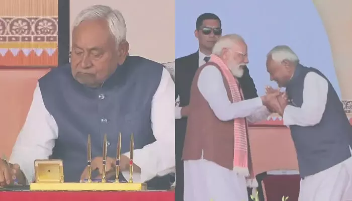 പട്നയിലെ ചരിത്രപ്രസിദ്ധമായ ഗാന്ധി മൈതാനത്ത് നടന്ന സത്യപ്രതിജ്ഞാ ചടങ്ങില് പ്രധാനമന്ത്രി നരേന്ദ്ര മോദി, കേന്ദ്ര ആഭ്യന്തരമന്ത്രി അമിത്ഷാ, മഹാരാഷ്ട്ര മുഖ്യമന്ത്രി ദേവേന്ദ്ര ഫ്ഡനാവിസ്, ആന്ധ്രപ്രദേശ് മുഖ്യമന്ത്രി എന്. ചന്ദ്രബാബു നായിഡു, ഗുജറാത്ത് മുഖ്യമന്ത്രി ഭൂപേന്ദ്ര പട്ടേല് തുടങ്ങി ഒട്ടേറെ പ്രമുഖര് പങ്കെടുത്തു.