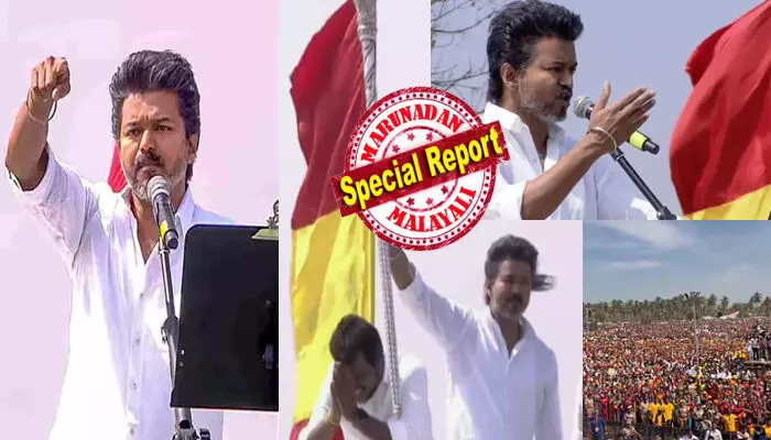 തമിഴ്നാട് രാഷ്ട്രീയത്തിലെ ഇതിഹാസങ്ങളായ അണ്ണാദുരൈയും എംജിആറും ആരുടെയും സ്വകാര്യ സ്വത്തല്ലെന്ന് അദ്ദേഹം ഓർമ്മിപ്പിച്ചു. അവരുടെ പൈതൃകം കാത്തുസൂക്ഷിക്കാനും ജനക്ഷേമത്തിനായി പ്രവർത്തിക്കാനും ടിവികെ പ്രതിജ്ഞാബദ്ധമാണെന്നും അദ്ദേഹം പറഞ്ഞു. എഐഎഡിഎംകെയുടെ ശക്തമായ തട്ടകമായ കൊങ്കുനാട്ടിൽ വെച്ച് എംജിആറിന്റെയും ജയലളിതയുടെയും യഥാർത്ഥ രാഷ്ട്രീയ പിന്തുടർച്ചക്കാരൻ താനാണെന്ന് സ്ഥാപിക്കാനുള്ള ശ്രമവും വിജയ്യുടെ പ്രസംഗത്തിലുണ്ടായിരുന്നു.