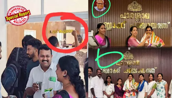 അതേസമയം, ചിത്രം മാറ്റിയോ എന്നറിയില്ലെന്നും വിഷയം പരിശോധിക്കാമെന്നുമാണ് ബ്ലോക്ക് പഞ്ചായത്ത് പ്രസിഡന്റ് എസ്. ഉഷാ കുമാരിയുടെ പ്രതികരണം.