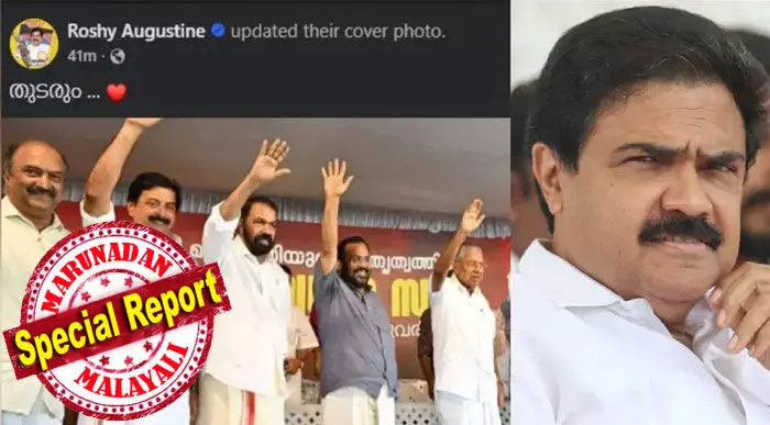 ജോസ് കെ. മാണി യുഡിഎഫിലേക്ക് കണ്ണ് നടുമ്പോള് മന്ത്രി റോഷി അഗസ്റ്റിന് തന്റെ ഫേസ്ബുക്ക് കവര് ഫോട്ടോ മുഖ്യമന്ത്രിയോടൊപ്പമുള്ള ചിത്രമാക്കി മാറ്റി വെല്ലുവിളിക്കുകയാണ്. ഇടതുമുന്നണിയുടെ സമരവേദിയില് നിന്നുള്ള ചിത്രം പങ്കുവെച്ച് 'തുടരും' എന്ന് കുറിച്ചതിലൂടെ മന്ത്രിസ്ഥാനം ഉപേക്ഷിക്കാന് താന് തയ്യാറല്ലെന്ന കൃത്യമായ സന്ദേശമാണ് റോഷി നല്കുന്നത്. എ.ന് ജയരാജ് എംഎല്എയും ഈ വിഷയത്തില് മൗനം പാലിക്കുന്നത് പാര്ട്ടിക്കുള്ളിലെ കടുത്ത ഭിന്നതയുടെ ആഴം വ്യക്തമാക്കുന്നു. റോഷി അഗസ്റ്റിനൊപ്പമാണ് പ്രമോദ് നാരായണന്. രണ്ട് എംഎല്മാരായ ജോബ് മൈക്കിളും സെബാസ്റ്റിയന് കുളത്തിങ്കലും ജോസ് കെ മാണിക്കൊപ്പമാണ്.