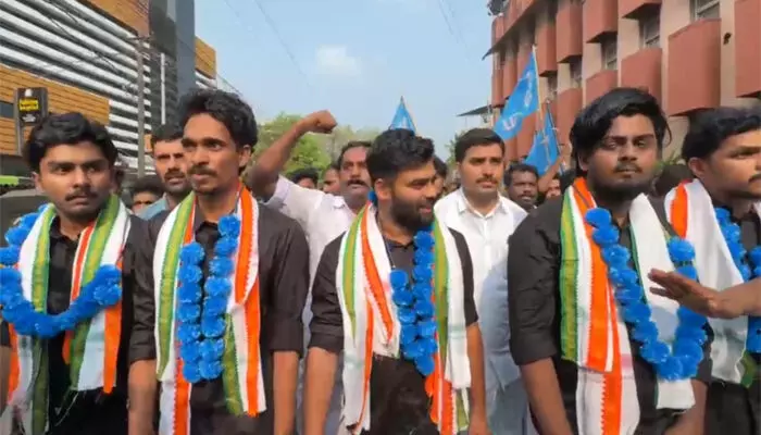 ജയില് മോചിതരായ കെഎസ് യു നേതാക്കള്ക്ക് വീരോചിത സ്വീകരണം