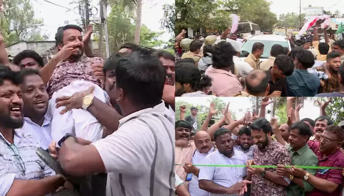 രാഹുല് മാങ്കൂട്ടത്തില് എത്തുമെന്ന് നേരത്തെ അറിഞ്ഞാണ് ഡിവൈഎഫ്ഐ പ്രതിഷേധവുമായി രംഗത്തെത്തുകയായിരുന്നു. എംഎല്എക്കെതിരെ ഗോ ബാക്ക് വിളികളുമായാണ് പ്രവര്ത്തകരുടെ പ്രതിഷേധം. അതേസമയം, ഡിവൈഎഫ്ഐ, ബിജെപി പ്രവര്ത്തകരുടെ പ്രതിഷേധത്തിനിടെ രാഹുലിന് പിന്തുണയുമായി കോണ്ഗ്രസ്, ലീഗ് പ്രവര്ത്തകരും സ്ഥലത്തെത്തി. പ്രതിഷേധം വകവെക്കാതെ രാഹുലിനെ കാറില് നിന്നിറക്കി എടുത്തുയര്ത്തി മുദ്രാവാക്യം വിളിച്ചാണ് ഡിവൈഎഫ്ഐയെ കോണ്ഗ്രസ് പ്രവര്ത്തകര് വെല്ലുവിളിച്ചത്. രാഹുലിനെ എടുത്തുയര്ത്തിയാണ് റോഡ് ഉദ്ഘാടന വേദിയിലേക്ക് കോണ്ഗ്രസ് പ്രവര്ത്തകര് കൊണ്ടുപോയത്. തുടര്ന്ന് രാഹുല് മാങ്കൂട്ടത്തില് നാട മുറിച്ച് റോഡ് ഉദ്ഘാടനം ചെയ്തു. നാട മുറിച്ചശേഷം രാഹുലിനെ എടുത്തുയര്ത്തിയാണ് പ്രവര്ത്തകര് പൊതുപരിപാടി നടക്കുന്ന വേദിയിലേക്ക് കൊണ്ടുപോയത്.