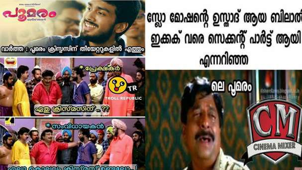ചിത്രം ഇറങ്ങുന്നതിലെ അനിശ്ചിതത്വം തന്നെയാണ് ട്രോളുകളിലേയ്ക്ക് നയിച്ചിരിക്കുന്നത്.. ഇന്ന് നടക്കും നാളെ നടക്കും എന്ന് പറഞ്ഞ് വൈകിപ്പിക്കുന്ന കാര്യങ്ങളെ 'പൂമരം പോലെയാകുമോഡേയ്' എന്ന് വിശേഷിപ്പിക്കുന്ന ശൈലി വരെയെത്തി കാര്യങ്ങൾ. കൂടാതെ പൂമരം ക്രിസ്തുമസിനെത്തുമെന്ന വാർത്തയും ഏത് ക്രിസ്തുമസ് എന്ന പ്രേക്ഷകരുടെ ചോദ്യത്തിന് എല്ലാ വർഷവും ക്രിസ്തുമസ് ഉണ്ടല്ലോ എന്ന ഉത്തരവുമായി സംവിധായകൻ വരുന്നതും സൂപ്പർഹിറ്റ് ചിത്രം പഞ്ചാബി ഹൗസിലെ കോമഡി രംഗങ്ങൾ വച്ചാണ് ട്രോളിറക്കിയിരിക്കുന്നത്. ഒപ്പം മിസ്റ്റർ ബീനും തേന്മാവിൻ കൊമ്പത്തും മീശമാധവനുമൊക്കെ ട്രോളുകളിൽ നിറയുകയാണ്.