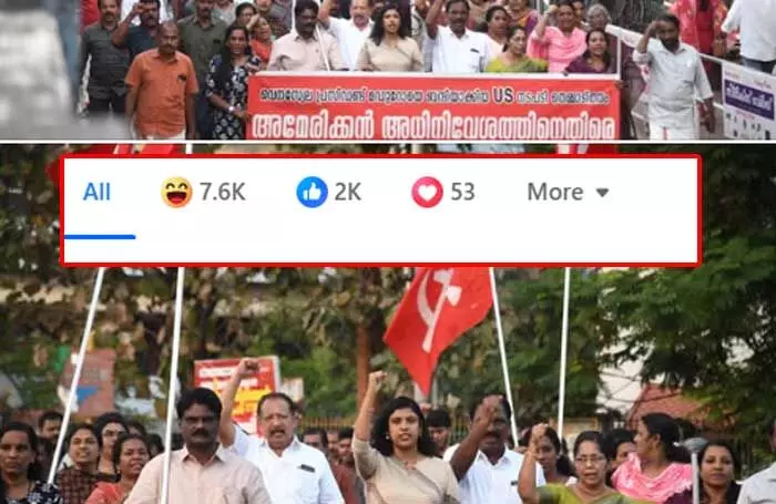 Down down US imperialism! എന്നു കുറിച്ചാണ് ചിന്ത ചിത്രങ്ങള് ഫേസ്ബുക്കില് ഇട്ടത്. ഇതിന്മേരാണ് കൂട്ടത്തോടെ ചിരി കമന്റുകളുമായി ആളുകള് എത്തിയത്. പതിനായിരത്തിന് അടുത്ത് പേര് ഈ ചിത്രത്തോട് റിയക്ട് ചെയ്തപ്പോള് ഇതില് ഏഴായിരത്തി അഞ്ഞൂറിലേറെ പേര് ചിരി ഇമോജിയാണ് ഇട്ടത്. കളിയാക്കുന്ന കമന്റുകളും ധാരാളമെത്തി.