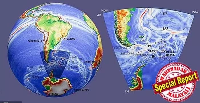 പറയുന്നത്. ഗള്ഫ് സ്ട്രീം ഉഷ്ണജല പ്രവാഹത്തേക്കാള് അഞ്ചിരട്ടി ശക്തവും ആമസോണ് നദിയേക്കാള് 100 മടങ്ങ് വലുതുമായ അന്റാര്ട്ടിക്ക് സര്ക്കംപോളാര് കറന്റ് ലോകത്തിലെ ഏറ്റവും വലിയ സമുദ്ര പ്രവാഹമാണ്. എന്നാല് ഈ സുപ്രധാന സംവിധാനം നിലച്ചുകൊണ്ടിരിക്കുകയാണെന്ന് ഒരു പുതിയ പഠനം മുന്നറിയിപ്പ് നല്കുന്നത്. കോര് സാമ്പിളുകള് വിശകലനം ചെയ്യുമ്പോള് ഈ സമുദ്ര പ്രവാഹം നിലയ്ക്കുകയാണ് എന്ന് തന്നെ കരുതേണ്ടി വരും.