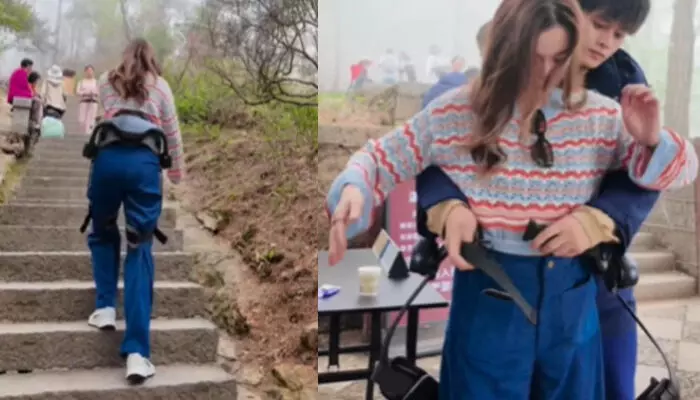ഇനി മുട്ട് വേദന ഉള്ളവർക്കും മലകയറാം..!!; കുത്തനെയുള്ള പടവുകൾ കയറാൻ നിങ്ങളെ 'റോബോട്ട് കാലു'കൾ സഹായിക്കും; ചുമ്മാ..ഈസിയായി കയറി യുവതി; വൈറലായി വീഡിയോ