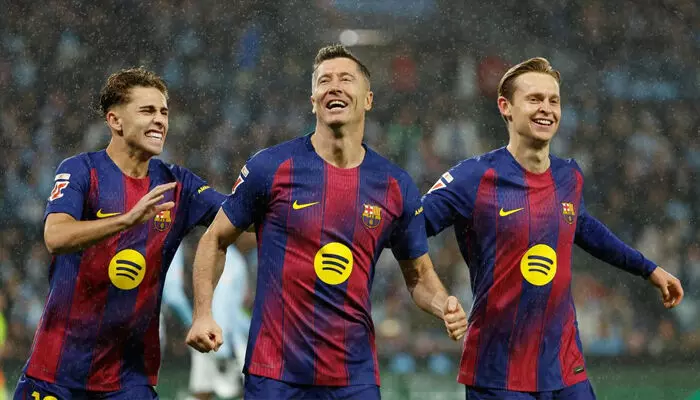 വിഗോ: ലാ ലിഗയിൽ സെൽറ്റാ വിയോയ്ക്കെതിരെ 4-2ന് തകർപ്പൻ ജയം നേടി ബാഴ്സലോണ. റോബർട്ട് ലെവൻഡോവ്സ്കിയുടെ ഹാട്രിക്കും ലാമിൻ യമാലിന്റെ ഒരു ഗോളുമാണ് ബാഴ്സലോണയുടെ തകർപ്പൻ വിജയം സമ്മാനിച്ചത്. ലീഗ് ടേബിളിൽ ഒന്നാം സ്ഥാനത്തുള്ള റയൽ മാഡ്രിഡിനോക്കാൾ മൂന്ന് പോയിന്റ് പിന്നിലാണ് ബാഴ്സലോണ.