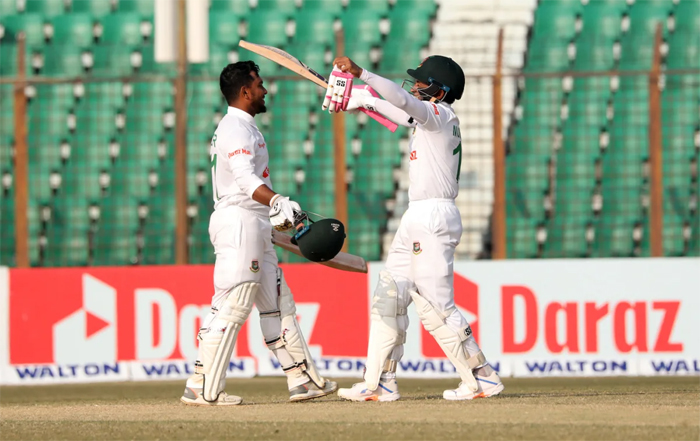 42-0 എന്ന സ്കോറിൽ നാലാം ദിനം ക്രീസിലിറങ്ങിയ ബംഗ്ലാദേശ് ഓപ്പണർമാർ നൽകിയ സെഞ്ചുറി കൂട്ടുകെട്ടിന്റെ കരുത്തിലാണ് തിരിച്ചടിച്ചത്. ഓപ്പണർമാരായ നജീമുൾ ഹൊസൈൻ ഷാന്റോയും സാക്കിർ ഹസനും ഓപ്പണിങ് വിക്കറ്റിൽ 124 റൺസ് കൂട്ടിച്ചേർത്തശേഷമാണ് വേർപിരിഞ്ഞത്.