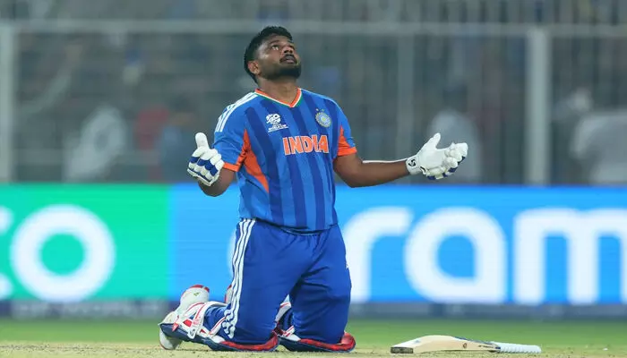 മുംബൈ വാംഖഡെ സ്റ്റേഡിയത്തിൽ നടന്ന ആവേശകരമായ സെമി ഫൈനലിൽ ഇംഗ്ലീഷ് ബൗളർമാരെ സഞ്ജു നിഷ്പ്രഭരാക്കി. വെറും 42 പന്തിൽ നിന്ന് എട്ട് ഫോറുകളും സിക്സറുകളും ഉൾപ്പെടെ 89 റൺസാണ് താരം അടിച്ചുകൂട്ടിയത്. സഞ്ജുവിന്റെ ഈ ഇന്നിംഗ്സാണ് ഇന്ത്യയെ 253 എന്ന കൂറ്റൻ സ്കോറിലേക്ക് എത്തിച്ചത്. ഇതോടെ ടി20 ലോകകപ്പ് നോക്കൗട്ട് മത്സരങ്ങളിൽ ഒരു ഇന്ത്യൻ താരം നേടുന്ന ഏറ്റവും ഉയർന്ന സ്കോറെന്ന വിരാട് കോലിയുടെ റെക്കോർഡിനൊപ്പവും (89 റൺസ്) സഞ്ജു എത്തി.