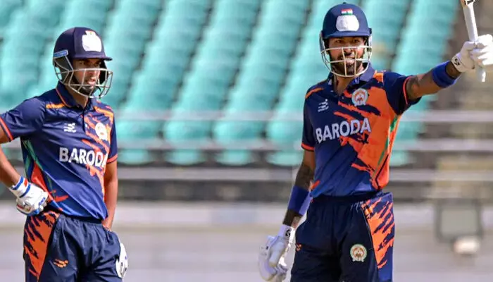 19 പന്തിൽ അർധസെഞ്ചുറി; അടിച്ചു കൂട്ടിയത് ഒൻപത് സിക്സറുകൾ; ആറാമനായി ക്രീസിലെത്തി ഹാർദിക് പാണ്ഡ്യയുടെ വെടിക്കെട്ട് ബാറ്റിങ്; വിജയ് ഹസാരെയിൽ ബറോഡയ്ക്ക് കൂറ്റൻ സ്കോർ