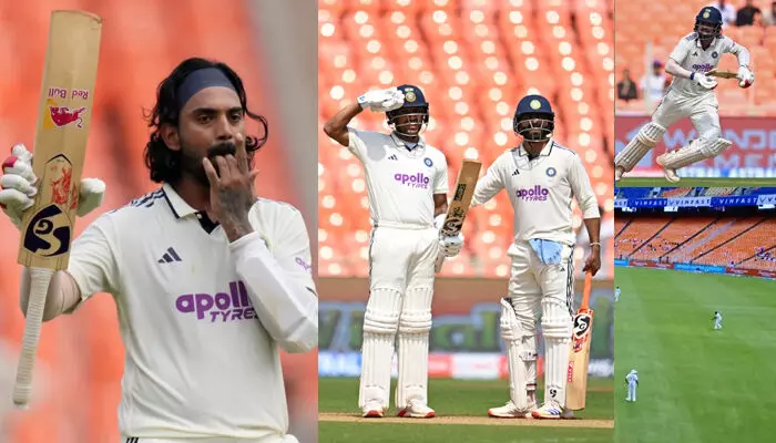 അഹമ്മദാബാദ്: അഹമ്മദബാദ് ക്രിക്കറ്റ് ടെസ്റ്റിന്റെ ഒന്നാം ദിനത്തില് വെസ്റ്റ് ഇന്ഡീസിന്റെ കൂട്ടത്തകര്ച്ച കണ്ട ഇന്ത്യന് ആരാധകര്ക്ക് മുന്നില് 'ട്രിപ്പിള്' സെഞ്ചുറിയുമായി രണ്ടാം ദിനം അവിസ്മരണീയമാക്കി കെ എല് രാഹുലും രവീന്ദ്ര ജഡേജയും ധ്രുവ് ജുറലും. കെ എല് രാഹുല് (100), ധ്രുവ് ജുറല് (125) എന്നിവര്ക്ക് പിന്നാലെയാണ് ജഡേജ സെഞ്ചുറി പൂര്ത്തിയാക്കിയത്. മൂവരുടേയും സെഞ്ചുറി കരുത്തില് ഇന്ത്യ അഹമ്മദാബാദ് ടെസ്റ്റില് രണ്ടാം ദിനം അവസാനിക്കുമ്പോള് അഞ്ച് വിക്കറ്റ് നഷ്ടത്തില് 448 റണ്സെടുത്തിട്ടുണ്ട്. ഇപ്പോള് 286 റണ്സിന്റെ ലീഡായി ഇന്ത്യക്ക്. വിന്ഡീസിന് വേണ്ടി റോസ്റ്റണ് ചേസ് രണ്ട് വിക്കറ്റ് വീഴ്ത്തി. വിന്ഡീസിന്റെ ആദ്യ ഇന്നിംഗ്സ് 162ന് അവസാനിച്ചിരുന്നു. നാല് വിക്കറ്റ് നേടിയ മുഹമ്മദ് സിറാജ്, മൂന്ന് പേരെ പുറത്താക്കിയ ജസ്പ്രിത് ബുമ്ര എന്നിവരാണ് വിന്ഡീസിനെ തകര്ത്തത്. കുല്ദീപ് യാദവ് രണ്ട് വിക്കറ്റ് വീഴ്ത്തി.