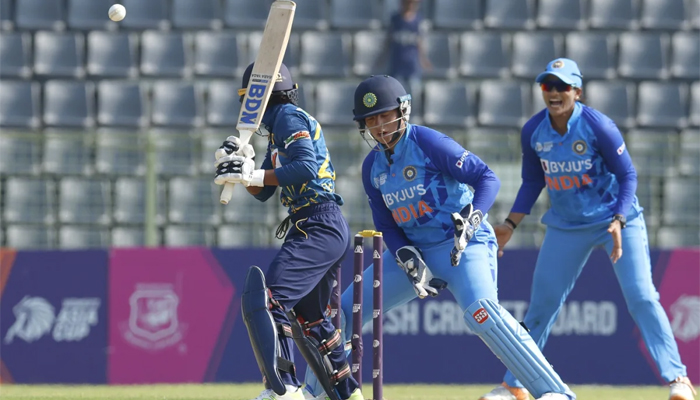 കവിഷ ദിൽഹാരി(1), നിലാക്ഷി ഡി സിൽവ(6), മൽഷ ഷെഹാനി(0) എന്നിവരും വേഗത്തിൽ കൂടാരം കയറി. 13 റൺസെടുത്ത ഒഷാധി രാണസിങ്കെയെ ഗയക്വാദും പുറത്താക്കി. ടീം 43-ൽ നിൽക്കേ ആറ് റണ്ണെ സുഗന്ധിക കുമാരിയെ സ്നേഹ റാണ വിക്കറ്റിന് മുന്നിൽ കുടുക്കി. പിന്നീട് ഇറങ്ങിയ ഇനോക റാണ വീരയും അച്ചിനി കുലസൂരിയയും ചെറിയ ചെറുത്തുനിൽപ്പ് നടത്തി. ഒടുവിൽ നിശ്ചിത 20-ഓവറിൽ ഒമ്പത് വിക്കറ്റ് നഷ്ടത്തിൽ ലങ്ക 65 റൺസെടുത്തു.