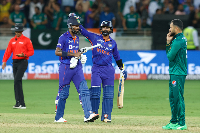 നാലു വിക്കറ്റെടുത്ത ഭുവനേശ്വർ കുമാറും മൂന്നു വിക്കറ്റ് വീഴ്ത്തിയ ഹാർദിക് പാണ്ഡ്യയും പാക്കിസ്ഥാനെ എറിഞ്ഞിട്ടപ്പോൾ പ്രമോഷൻ കിട്ടി നേരത്തേ ഇറങ്ങിയ രവീന്ദ്ര ജദേജ (29 പന്തിൽ 35), വിരാട് കോഹ് ലി (34 പന്തിൽ 35), ഹാർദിക് പാണ്ഡ്യ (17 പന്തിൽ 33) എന്നിവർ ഇന്ത്യക്ക് വിജയമൊരുക്കി. പാക്കിസ്ഥാനുവേണ്ടി മുഹമ്മദ് നവാസ് മൂന്നും നസീം ഷാ രണ്ടും വിക്കറ്റെടുത്തു.