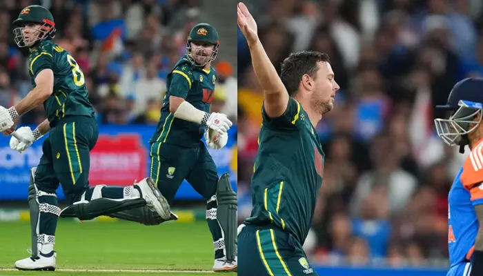 ടോസ് നഷ്ടത്തിന് പിന്നാലെ ക്രീസിലെത്തിയ ഇന്ത്യയെ ആദ്യ പന്തില് തന്നെ ജോഷ് ഹേസല്വുഡ് ഞെട്ടിച്ചു. ഹേസല്വുഡിന്റെ ആദ്യ പന്തില് തന്നെ വൈസ് ക്യാപ്റ്റന് ശുഭ്മാന് ഗില് വിക്കറ്റിന് മുന്നില് കുടുങ്ങി ഔട്ടായതായി അമ്പയര് വിധിച്ചെങ്കിലും റിവ്യു എടുത്ത് രക്ഷപ്പെട്ടു. തൊട്ടു പിന്നാലെ ഗില്ലിനെ വിറപ്പിച്ച് ഹേസല്വുഡിന്റെ ബൗണ്സര് ഹെല്മെറ്റിലിടിച്ചു. ഹേസല്വുഡിന്റെ ആദ്യ ഓവറില് ഒരു റണ് മാത്രമാണ് ഇന്ത്യ നേടിയത്. സേവിയര് ബാര്ട്ലെറ്റിന്റെ രണ്ടാം ഓവറില് സിക്സും ഫോറും പറത്തി അഭിഷേക് ശര്മ 17 റണ്സടിച്ച് തുടക്കം ഗംഭീരമാക്കി. എന്നാല് മൂന്നാം ഓവറില് ഗില്ലിനെ മടക്കിയ ഹേസല്വുഡ് ഓസീസിന് ആദ്യ ബ്രേക്ക് ത്രൂ സമ്മാനിച്ചു. ഹേസല്വുഡിന്റെ പന്തുകള് ഇന്ത്യയെ വിറപ്പിച്ചപ്പോള് മൂന്നാം നമ്പറില് ക്യാപ്റ്റന് സൂര്യകുമാര് യാദവിന് പകരം സഞ്ജു സാംസണാണ് ഇറങ്ങിയത്.