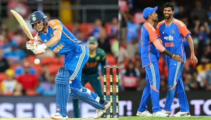 എന്നാല് മൂന്നാം വിക്കറ്റില് ഒത്തു ചേര്ന്ന ക്യാപ്റ്റന് സുര്യകുമാര് യാദവും ഗില്ലും ചേര്ന്ന് ഇന്ത്യയെ 100 കടത്തി. ആദം സാംപയുടെ ഒരോവറില് രണ്ട് സിക്സ് പറത്തിയ സൂര്യകുമാര് യാദവും സ്റ്റോയ്നിസിന്റെ പന്തില് എല്ബഡബ്ല്യുവില് നിന്ന് റിവ്യൂവിലൂടെ രക്ഷപ്പെട്ട ശേഷം പടുകൂറ്റന് സിക്സ് പറത്തിയ ഗില്ലും പ്രതീക്ഷ നല്കിയെങ്കിലും പതിനഞ്ചാം ഓവറിലെ ആദ്യ പന്തില് ഗില്ലിനെ(39 പന്തില് 46) മടക്കിയ നഥാന് എല്ലിസ് ഇന്ത്യക്ക് മൂന്നാം പ്രഹരമേല്പ്പിച്ചു. പിന്നാലെ സൂര്യകുമാര് യാദവിനെ(10 പന്തില് 20) സേവിയര് ബാര്ട്ലെറ്റും തിലക് വര്മയെയും(5), ജിതേഷ് ശര്മയെയും(3) ആദം സാംപയും മടക്കിയതോടെ ഇന്ത്യ 121-2ല് നിന്ന് 136-6ലേക്ക് കൂപ്പുകുത്തി.