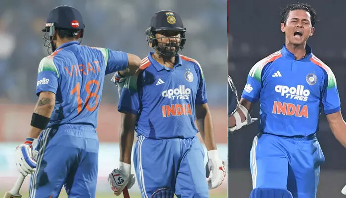 സെഞ്ചുറിക്ക് ശേഷം തകര്ത്തടിച്ച ജയ്സ്വാളും 40 പന്തില് അര്ധസെഞ്ചുറി തികച്ച കോലിയും ചേര്ന്ന് പിന്നീട് അതിവേഗം ഇന്ത്യന് ജയം പൂര്ത്തിയാക്കി. ജയ്സ്വാള് 121 പന്തില് 116 റണ്സുമായി പുറത്താകാതെ നിന്നപ്പോള് കോലി 45 പന്തില് 65 റണ്സുമായി പുറത്താകാതെ നിന്നു. 12 ഫോറും രണ്ട് സിക്സും അടങ്ങുന്നതാണ് ജയ്സ്വാളിന്റെ ഇന്നിംഗ്സ്. കോലി ആറ് ഫോറും മൂന്ന് സിക്സും പറത്തിയപ്പോള് 75 റണ്സടിച്ച് പുറത്തായ രോഹിത് ഏഴ് ഫോറും മൂന്ന് സിക്സും പറത്തി.