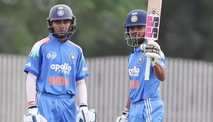 അത്ര നല്ലതായിരുന്നില്ല ഇന്ത്യയുടെ തുടക്കം. രണ്ടാം ഓവറില് തന്നെ മാത്രെ മടങ്ങി. സത്നകുമാരന്റെ പന്ത് അതിര്ത്തി കടത്താനുള്ള ശ്രമത്തിനിടെ മിഡ് ഓണില് ഡീസ് പത്രോ ക്യാച്ചെടുക്കുകയായിരുന്നു. അഞ്ചാം ഓവറില് മല്ഹോത്രയും പവലിയനില് തിരിച്ചെത്തി. അക്രമിന്റെ ഔട്ട്സ്വിങ്ങറില് ഹബാറ്റ് വച്ച താരം സ്ലിപ്പില് മുഹമ്മദ് ആലിഫിന് ക്യാച്ച് നല്കുകയായിരുന്നു. പിന്നാലെ വൈഭവ് അര്ധ സെഞ്ചുറി പൂര്ത്തിയാക്കി. എന്നാല് അധിക നേരം ക്രീസില് തുടരാന് വൈഭവിന് സാധിച്ചില്ല. അക്രമിനെതിരെ ലോംഗ് ഓഫിലൂടെ സിക്സടിക്കാന് ശ്രമിക്കുന്നതിനിടെ ബൗണ്ടറി ലൈനില് ക്യാച്ച് നല്കി. 26 പന്തുകള് നേരിട്ട താരം മൂന്ന് സിക്സും അഞ്ച് ഫോറും നേടി.