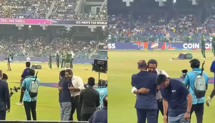 ഇന്നലെ കൊളംബോയില് ഇന്ത്യയും പാക്കിസ്ഥാനും തമ്മില് നടന്ന ട്വന്റി 20 ലോകകപ്പ് മത്സരത്തിനിടെയുള്ള രണ്ടു ദൃശ്യങ്ങളാണവ. മത്സരത്തിന് മുന്നോടിയായി നടന്ന ചടങ്ങിനിടെ മുന് ഇന്ത്യന് ക്യാപ്റ്റനും സ്റ്റാര് ബാറ്റ്സ്മാനുമായ രോഹിത് ശര്മ്മയും മുന് പാക്കിസ്ഥാന് ക്രിക്കറ്റ് ടീം നായകന് വസീം അക്രവും ആലിംഗനം ചെയ്ത് സൗഹൃദം പങ്കുവയ്ക്കുന്നതിന്റെ ദൃശ്യങ്ങളാണ് വൈറലായത്. പാക്കിസ്ഥാന് താരങ്ങള്ക്ക് ഹസ്തദാനം നല്കില്ലെന്ന് ഇന്ത്യന് താരങ്ങള് നിലപാടെടുത്ത പശ്ചാത്തലത്തിലാണ് ഇത് കൂടുതല് ശ്രദ്ധിക്കപ്പെടുന്നത്.