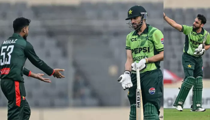 പാകിസ്ഥാന് ഇന്നിംഗ്സിന്റെ 39-ാം ഓവറിലായിരുന്നു നാടകീയ സംഭവങ്ങള്. സല്മാന് അഗയും മുഹമ്മദ് റിസ്വാനും ചേര്ന്ന് നാലാം വിക്കറ്റില് 109 റണ്സിന്റെ ശക്തമായ കൂട്ടുകെട്ടുമായി പാകിസ്ഥാനെ 230/3 എന്ന സുരക്ഷിത നിലയില് എത്തിച്ചിരുന്നു. മെഹ്ദി ഹസന് എറിഞ്ഞ പന്ത് സ്ട്രൈക്കിംഗ് എന്ഡിലായിരുന്ന റിസ്വാന് നേരെ മുന്നോട്ട് അടിച്ചു. പന്ത് പിടിക്കാന് ശ്രമിച്ച മെഹ്ദി നോണ്-സ്ട്രൈക്കിംഗ് എന്ഡിലായിരുന്ന സല്മാന് അഗയുടെ കാലിന് താഴെവെച്ചാണ് പന്ത് തടുത്തത്. വീണുകിടന്ന മെഹ്ദിക്ക് പന്തെടുത്തുകൊടുക്കാന് സല്മാന് അഗ കുനിയുന്നതിനിടെ പന്ത് കൈക്കലാക്കിയ മെഹ്ദ് സ്റ്റംപ് തെറിപ്പിച്ച് റണ്ണൗട്ടിനായി അപ്പീല് ചെയ്തു. ഈ സമയം ക്രീസിന് പുറത്തായിരുന്നു അഗ.