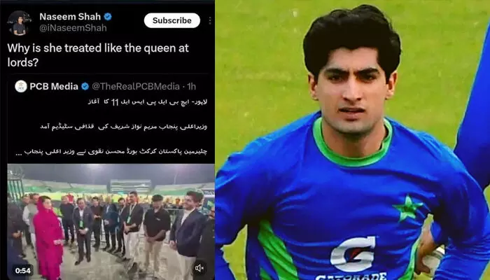 'എന്തിനാണ് ലോര്ഡ്സിലെ റാണിയെപ്പോലെ അവരെ പരിഗണിക്കുന്നത്?' മറിയം നവാസിനെ ഉന്നമിട്ട് പാക്ക് പേസര് നസീം ഷായുടെ പോസ്റ്റ്; കടുത്ത പ്രതിഷേധം; കടുത്ത നടപടിയിലേക്ക് പിസിബി