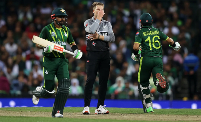 റിസ്വാൻ മടങ്ങിയ ശേഷം ഹാരിസ് ഒരു സിക്സും ഫോറുമടിച്ച് സമ്മർദം കുറച്ചു. എന്നാൽ 19-ാം ഓവറിലെ അവസാന പന്തിൽ ഹാരിസിനെ മിച്ചൽ സാന്റ്നർ പുറത്താക്കി. എന്നാൽ 20-ാം ഓവറിലെ ആദ്യ പന്തിൽ തന്നെ വിജയറൺ നേടിക്കൊണ്ട് ഷാൻ മസൂദ് ടീമിന് വിജയം സമ്മാനിച്ചു. ഷാൻ മൂന്ന് റൺസെടുത്തും ഇഫ്തിഖർ അഹമ്മദ് റൺസെടുക്കാതെയും പുറത്താവാതെ നിന്നു.ന്യൂസീലൻഡിനായി ട്രെന്റ് ബോൾട്ട് രണ്ടുവിക്കറ്റെടുത്തപ്പോൾ സാന്റ്നർ ഒരു വിക്കറ്റ് വീഴ്ത്തി.