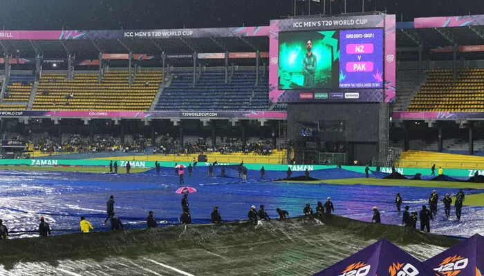 കൊളംബോ: ടി20 ലോകകപ്പിലെ സൂപ്പർ എട്ടിലെ ആദ്യ മത്സരത്തിൽ മഴ വില്ലനായി. കൊളംബോ ആർ. പ്രേമദാസ സ്റ്റേഡിയത്തിൽ നടക്കേണ്ടിയിരുന്ന പാകിസ്ഥാൻ - ന്യൂസിലൻഡ് പോരാട്ടം ഒരു പന്തുപോലും എറിയാനാവാതെ ഉപേക്ഷിച്ചു. ടോസ് നേടിയ പാകിസ്ഥാൻ ബാറ്റിംഗ് തിരഞ്ഞെടുത്തതിന് തൊട്ടുപിന്നാലെയാണ് മഴയെത്തിയത്. മത്സരം ഉപേക്ഷിച്ചതോടെ ഇരു ടീമുകളും ഓരോ പോയിന്റ് വീതം പങ്കിട്ടു.