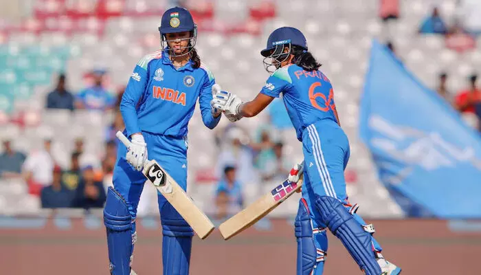 കിവി ബൗളർമാരെ നിലംപരിശാക്കി ഇന്ത്യൻ വനിതകൾ; പ്രതിക റാവലിന്റെ സ്മൃതി മന്ദാനയുടെയും സെഞ്ചുറി മികവിൽ ഇന്ത്യയ്ക്ക് കൂറ്റന് സ്കോർ; വനിതാ ഏകദിന ലോകകപ്പിലെ നിർണായക മത്സരം മഴ ഭീഷണിയിൽ