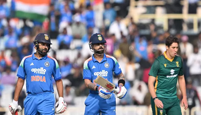 ഇന്ത്യക്ക് മികച്ച തുടക്കമായിരുന്നില്ല ലഭിച്ചത്. സ്കോർബോർഡിൽ 25 റൺസുള്ളപ്പോൾ യശസ്വി ജയ്സ്വാൾ (18) പുറത്തായി. നാലാം ഓവറിൽ നന്ദ്രേ ബർഗറിന്റെ പന്തിൽ വിക്കറ്റ് കീപ്പർ ക്വിന്റൺ ഡി കോക്കിന് ക്യാച്ച് നൽകിയാണ് ജയ്സ്വാൾ മടങ്ങിയത്. പിന്നീട് ക്രീസിലെത്തിയ രോഹിത് ശർമയും (51 പന്തിൽ 57 റൺസ്) കോലിയും ചേർന്ന് മൂന്നാം വിക്കറ്റിൽ 136 റൺസിന്റെ കൂട്ടുകെട്ടുണ്ടാക്കി. രോഹിത്തിനെ 22-ാം ഓവറിൽ മാർകോ യാൻസൻ പുറത്താക്കി. തുടർന്നെത്തിയ റുതുരാജ് ഗെയ്കവാദിന് (8) കാര്യമായ സംഭാവന നൽകാനായില്ല. വാഷിംഗ്ടൺ സുന്ദറും (13) നിരാശപ്പെടുത്തിയതോടെ ഇന്ത്യ നാലിന് 200 എന്ന നിലയിലായി.