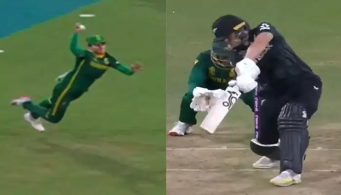കവറിൽ പന്ത് ലോഫ്റ് ചെയ്ത് ന്യൂസിലൻഡ് ബാറ്റർ; കവറിൽ ഉയർന്ന് ചാടി ഒരു കൈകൊണ്ട് ക്യാച്ചെടുത്ത് ദക്ഷിണാഫ്രിക്കൻ ക്യാപ്റ്റൻ; ടൂർണമെന്റിലെ ഏറ്റവും മികച്ച ക്യാച്ച് ഇതാവുമെന്ന് ആരാധകർ; വൈറലായി വീഡിയോ