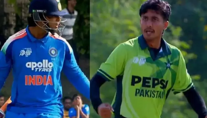 ദുബായിൽ നടന്ന ഇന്ത്യ-പാക്കിസ്ഥാൻ കലാശപ്പോരാട്ടത്തിനിടെയാണ് സംഭവം. പാകിസ്ഥാൻ ഉയർത്തിയ 348 റൺസ് എന്ന കൂറ്റൻ വിജയലക്ഷ്യം പിന്തുടർന്ന് ബാറ്റിംഗിനിറങ്ങിയതായിരുന്നു ഇന്ത്യ. വെറും 14 വയസ്സ് മാത്രം പ്രായമുള്ള വൈഭവ് സൂര്യവംശി തകർപ്പൻ ഫോമിലാണ് ഇന്നിംഗ്സ് ആരംഭിച്ചത്. എന്നാൽ അഞ്ചാം ഓവറിൽ അലി റാസയുടെ പന്തിൽ താരം പുറത്തായി.