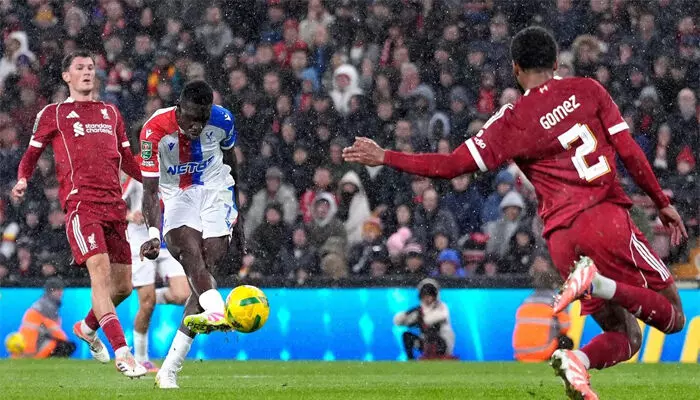 ലണ്ടൻ: ഇംഗ്ലീഷ് ഫുട്ബോൾ ലീഗ് കപ്പിൽ ലിവർപൂൾ ക്രിസ്റ്റൽ പാലസിനോട് എതിരില്ലാത്ത മൂന്നു ഗോളുകൾക്ക് പരാജയപ്പെട്ട് ടൂർണമെന്റിൽ നിന്ന് പുറത്തായി. ആൻഫീൽഡിൽ നടന്ന മത്സരത്തിൽ ആദ്യപകുതിയിൽ ഇസ്മായില സാർ നേടിയ ഇരട്ട ഗോളുകളാണ് ലിവർപൂളിന് തിരിച്ചടിയായത്. 41, 45 മിനിറ്റുകളിലാണ് സാർ ലക്ഷ്യം കണ്ടത്. പ്രിമിയർ ലീഗിൽ തുടർച്ചയായ നാല് മത്സരങ്ങളിൽ പരാജയപ്പെട്ടതിന് പിന്നാലെയാണ് ലിവർപൂളിന്റെ ലീഗ് കപ്പ് തോൽവി.
