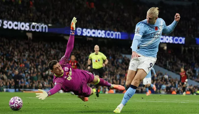 മാഞ്ചസ്റ്റർ: പ്രീമിയർ ലീഗിൽ ബോൺമൗത്തിനെ 3-1ന് പരാജയപ്പെടുത്തി മാഞ്ചസ്റ്റർ സിറ്റി. എർലിംഗ് ഹാളണ്ടിന്റെ ഇരട്ട ഗോളുകളുടെ പിൻബലത്തിലാണ് സീസണിൽ മികച്ച ഫോമിലുള്ള ബോൺമൗത്തിനെ സിറ്റി പരാജയപ്പെടുത്തിയത്. ഈ വിജയത്തിലൂടെ സിറ്റി ലീഗ് ടേബിളിൽ രണ്ടാസ്ഥാനത്തേക്ക് മുന്നേറി. നിലവിൽ 19 പോയിന്റുള്ള മാഞ്ചസ്റ്റർ സിറ്റി, ഒന്നാം സ്ഥാനത്തുള്ള ആഴ്സനലിനേക്കാൾ 6 പോയിന്റ് പിന്നിലാണ്. ബോൺമൗത്ത് 18 പോയിന്റോടെ നാലാം സ്ഥാനത്തേക്ക് പിന്തള്ളപ്പെട്ടു.