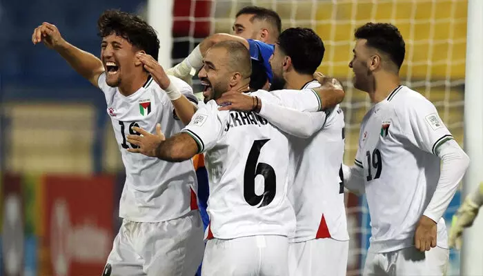 ദോഹ: ഫിഫ അറബ് കപ്പ് 2025-ന്റെ ഗ്രൂപ്പ് ഘട്ടത്തിലേക്ക് യോഗ്യത നേടി ഫലസ്തീൻ ഫുട്ബോൾ ടീം. യോഗ്യതാ റൗണ്ടിൽ ആവേശകരമായ മത്സരത്തിൽ ലിബിയയെ പെനാൽറ്റി ഷൂട്ടൗട്ടിൽ 4-3 ന് തകർത്താണ് ഫലസ്തീൻ മുന്നേറിയത്. ദോഹയിൽ നടന്ന ആവേശ പോരാട്ടത്തിൽ നിശ്ചിത സമയത്തും അധിക സമയത്തും ഇരു ടീമുകൾക്കും ഗോൾ നേടാൻ കഴിഞ്ഞിരുന്നില്ല. തുടർന്ന് മത്സരം പെനാൽറ്റി ഷൂട്ട്ഔട്ടിലേക്ക് കടക്കുകയായിരുന്നു.