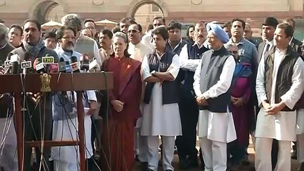 അതേസമയം, നോട്ട് അസാധുവാക്കിയതുമായി ബന്ധപ്പെട്ട പ്രശ്നങ്ങളും പാർലമെന്റ് തടസപ്പെട്ട കാര്യങ്ങളും ചൂണ്ടിക്കാണിച്ചു പ്രതിപക്ഷം രാഷ്ട്രപതിയെ കണ്ടു നിവേദനം നൽകുകയുണ്ടായി. കോൺഗ്രസ് അധ്യക്ഷ സോണിയ ഗാന്ധി, ഉപാധ്യക്ഷൻ രാഹുൽ ഗാന്ധി, മുൻ പ്രധാനമന്ത്രി മന്മോഹൻ സിങ് എന്നിവരാണു നിവേദനം നൽകിയത്. നോട്ട് അസാധുവാക്കിയ വിഷയത്തിൽ പാർലമെന്റിൽ ചർച്ച വേണമെന്നു രാഷ്ട്രപതി പ്രണബ് മുഖർജിയോട് ആവശ്യപ്പെട്ടെന്നു കോൺഗ്രസ് നേതാവ് മല്ലികാർജുൻ ഖാർഗെ മാദ്ധ്യമങ്ങളെ അറിയിച്ചു. കർഷകരും ചെറുകിട വ്യവസായികളും നേരിടുന്ന പ്രശ്നങ്ങളും ചർച്ച ചെയ്യണമെന്നും രാഷ്ട്രപതിയോട് ആവശ്യപ്പെട്ടു.