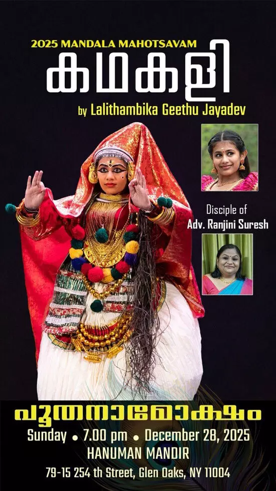 7 മുതല് 8 വരെ കഥകളി - പൂതനാമോക്ഷം (ലളിതാംബിക, ഗീതു ജയദേവ്, മിസൗറി)8 മുതല് 8.30 മഹാ പ്രസാദ വിതരണം, അന്നദാനം.