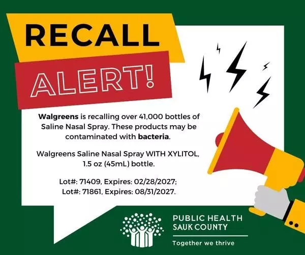 കണ്ടാമിനേഷന് (അണുബാധ) ആശങ്കകളെ തുടര്ന്ന് Walgreens Saline Nasal Spray with Xylitol-ന്റെ 1.5 ഔണ്സ് ബോട്ടിലുകളാണ് തിരിച്ചുവിളിച്ചത്. ഭക്ഷ്യ-മരുന്ന് ഭരണകൂടം (FDA) പറയുന്നതനുസരിച്ച്, ഈ ഉല്പ്പന്നത്തില് Pseudomonas lactis എന്ന ബാക്ടീരിയയുടെ സാന്നിധ്യം ഉണ്ടാകാന് സാധ്യതയുണ്ട്.